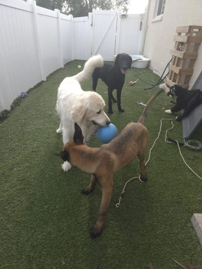 " Gabby is amazing with my three-year-old Chocolate Labrador, Patton. He has gone there for daycare, short term and long-term boarding, and completed her board and train program. With a baby on the way, she has really helped me and Patton communicate better and supported me as I build on her training. He has done an amazing job and she truly cares about seeing him succeed. I will continue having her care for Patton and I 100% recommend her and her services. "